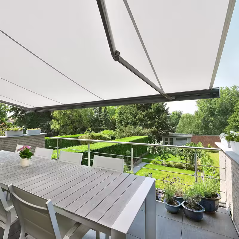 Локтевые маркизы идеально подходят для террас, балконов или патио. Они создают уютную зону отдыха, защищённую от палящего солнца и осадков.